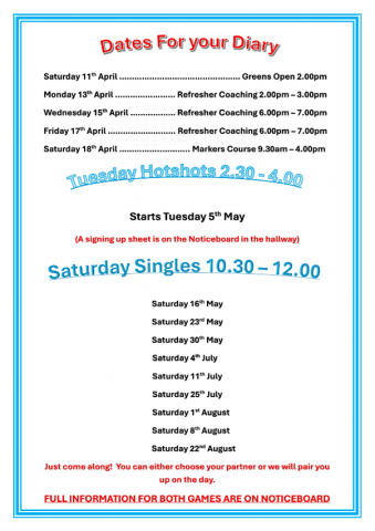 Dates for your Diary By Kelvin 14th March 2026 14th March 2026 2026 League Fixtures How to book a rink